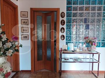 P. terra - Ingresso su salone doppio di c.a 45 mq, sala da pranzo, cucina abitabile, 2 ampie camere con possibilità di una terza stanza, ripostiglio, 2 bagni finestrati con doccia e vasca, loggiato frontale.