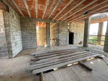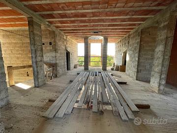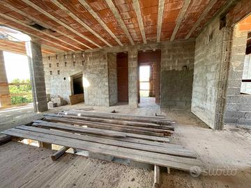 C4) a Serramanna affascinante villa in costruzione (tetto completo di tegole), su grande lotto di terreno di 1.200 mq (divisibile in più lotti), superficie coperta di 150 mq a piano su tre livelli. La casa in progetto è così composta: locali seminterrati con bagno, 2 vani, rampa di ingresso per posti auto, piano rialzato con ingresso dalla scalinata frontale, disimpegno, bagno, cucina, soggiorno, studio, camera da letto, vano scala, bella veranda che si affaccia sul giardino posteriore; al piano primo 2 camere da letto, 2 verande, disimpegno con veduta sul piano terra, bagno, 2 ripostigli. La villa si presta ad una facile divisione in più appartamenti, o ad una diversa distribuzione degli spazi, si trova nelle vicinanze della lottizzazione San Leonardo.
