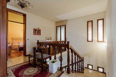 Salendo al primo piano si accede alla zona notte composta da quattro camere da letto -- due matrimoniali e due singole -- un secondo bagno, un comodo ripostiglio e un poggiolo condiviso dalle due camere matrimoniali, perfetto per momenti di relax all'aperto.