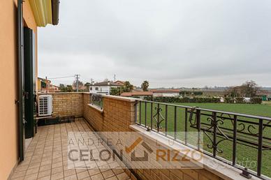 Al piano primo si sviluppa la zona notte con tre camere da letto, secondo bagno e due poggioli che servono tutte le stanze.