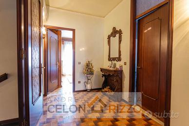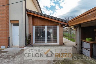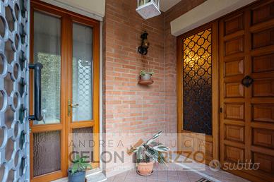 Gli spazi interni sono caldi e ben distribuiti, con ambienti luminosi che si aprono verso l'esterno e accompagnano la vita quotidiana in modo naturale. Al piano padronale la casa offre una cucina separata, un bagno completamente ristrutturato, una camera matrimoniale e due camere singole, creando una zona notte comoda e ben organizzata per tutta la famiglia. Il soggiorno con caminetto dona un'atmosfera accogliente nelle stagioni più fredde, mentre il portico chiudibile diventa nei mesi estivi un vero prolungamento della casa, perfetto per vivere il giardino in ogni momento della giornata. La presenza di un mini appartamento completo al piano terra rende la proprietà particolarmente versatile, ideale anche per ospitare un familiare o ricavare uno spazio indipendente.