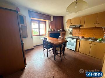 La soluzione misura 130 metri quadri commerciali su due livelli, risulta abitabile sin da subito, ed è composta al piano terra da ingresso indipendente, cucina con termo camino, salone, due camere da letto, ripostiglio e servizio; al piano semi interrato due cantine e tre ripostigli/legnaie.
