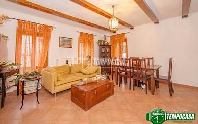 La soluzione proposta qui è composta da ingresso, soggiorno ampio impreziosito da camino in muratura e adiacente cucina abitabile attrezzata a L sui due lati. La porta finestra conduce al cortile esterno in gran parte piastrellato dove è possibile svagarsi e/o rilassarsi con amici e parenti durante la bella stagione. La zona notte la troviamo al primo piano composta da due camere da letto di cui una matrimoniale over size e bagno con sanitari sospesi e vasca.