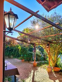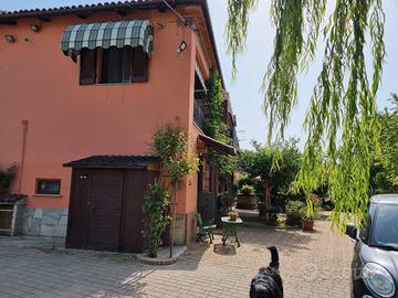 Salone con camino, cucina, due camere, bagno con vasca e doccia, grande tavernetta, giardino privato, posto auto, riscaldamento autonomo.
