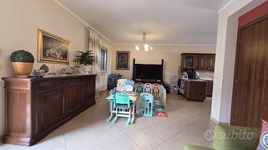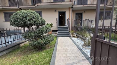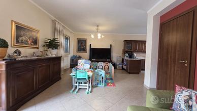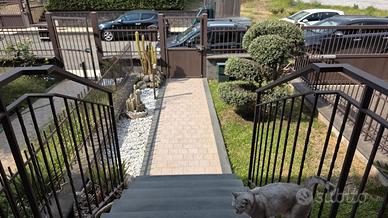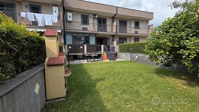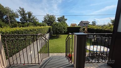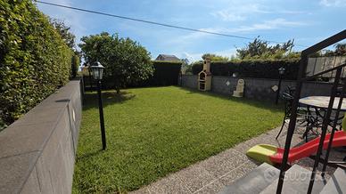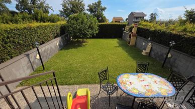 Al piano terra si accede a un ampio e luminoso salone con cucina all'americana che si affaccia direttamente sul giardino privato, ideale per momenti di relax o convivialità, oltre a un bagno con doccia. La scala interna conduce al piano superiore, dove si sviluppa la zona notte composta da tre camere tutte balconate e un secondo bagno dotato di vasca. A completare la proprietà, un pratico garage con accesso diretto all'interno della villetta, che garantisce comfort e sicurezza.