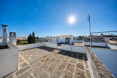 Al piano terra, l'abitazione è già pronta per essere abitata e comprende una camera da letto, una sala, una cucina abitabile con accesso diretto al giardino, un bagno e un ripostiglio. Gli ambienti sono caratterizzati da tradizionali volte a stella salentine. Il piano superiore è composto da ingresso, tre camere da letto, un bagno, una cucina abitabile con cucinotto e camino, e una lavanderia. Questa zona necessita di una ristrutturazione ordinaria, ma offre numerose possibilità di personalizzazione.