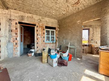 Un'ulteriore scala interna ci permette di raggiungere il secondo piano. Questo livello, allo stato rustico, si compone di due camere da letto, soggiorno e cucina.