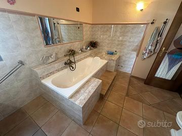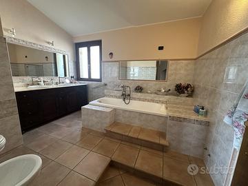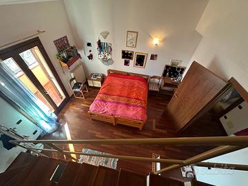 -al piano primo la zona notte, pavimentata in parquet naturale, con camera matrimoniale e bagno en suite, camera doppia con soppalco, camera singola, ampio bagno padronale, tre balconi.