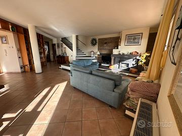 -al piano terra la zona giorno con ingresso su ampio e panoramico soggiorno con uscita su veranda coperta, cucina abitabile che si affaccia su una seconda spaziosa veranda coperta e sul cortile a livello, comodo bagno/lavanderia;