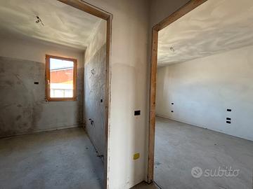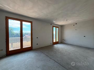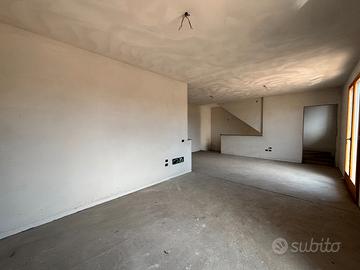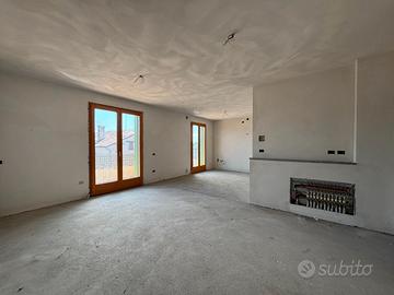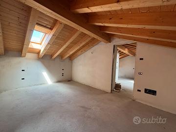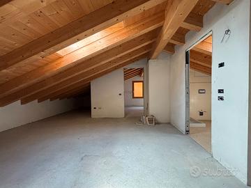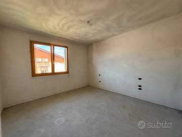 PREZZO FINITA CHIAVI IN MANO! Proponiamo ULTIMA NUOVA PORZIONE di schiera centrale dagli ampi spazi in posizione comoda al centro paese, servizi e trasporti pubblici. Al piano terra ingresso sul giardino di proprietà, spazioso garage di mq 44, cantina/taverna di mq 40 con predisposizione per una cucina e bagno finestrato con doccia mq 5.45. Al piano primo raggiungibile attraverso scala in marmo coperta troviamo una grande zona giorno-cottura open space di mq 35 facilmente separabile e dalla quale è possibile accedere alla terrazza esposta a est, corridoio, camera matrimoniale mq 15, camera singola mq 11.30, studio/guardaroba mq 8.11 e secondo bagno finestrato di mq 6.18. Al piano mansardato tutto travato a vista stanza da adibire a palestra/giochi/altro, camera matrimoniale mq 18 e terzo bagno con doccia. Scoperto privato su fronte/retro per mq 100 totali. Impianto di riscaldamento a pavimento al piano terra e primo, tradizionale in mansarda. Pannelli solari per acqua calda. Fontana. L'attestato di prestazione energetica (APE) verrà prodotta a cantiere ultimato con previsione di classe "A". Possibilità di scelta delle finiture! Iva 4% come nuova costruzione. Per maggiori informazioni chiama lo oppure