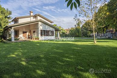 Tempocasa Montichiari propone in vendita nel pieno centro di Montichiari, in una posizione comoda a tutti i servizi ma al tempo stesso riservata, ampia porzione di villa bifamiliare immersa in un ampio giardino privato di circa 2.000 mq.