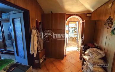 Al piano terra, l'immobile offre un'autorimessa privata con ingresso separato e l'accesso principale all'abitazione, che si apre su un vano scala. Sempre al piano terra, si trova un pratico ripostiglio aperto per scarpe e giacche, un bagno di servizio e una tavernetta accogliente, ideale per trascorrere momenti di relax o per ricevere ospiti.