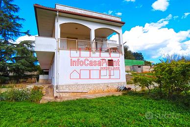 In primissima periferia, raggiungibile anche a piedi, a 200 mq dalla villa comunale, ampia villa, così composta: locale deposito di circa 150 mq a piano terra, ideale per box auto o per tavernetta, I piano, salone, cucina con cucinino, 2 camere da letto, bagno e ampia veranda panoramica, Circonda la villa un terreno di circa 5.000 mq . Buone condizioni generali