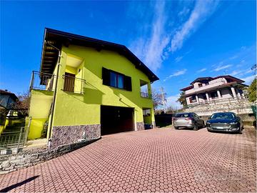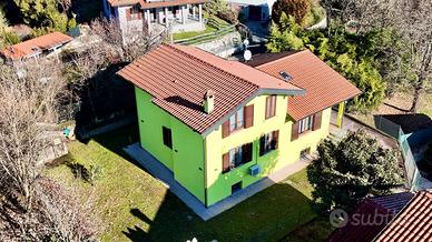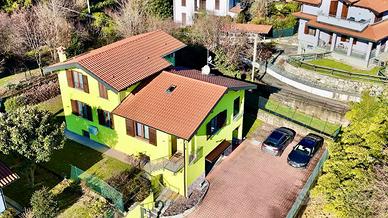 In un angolo riservato e silenzioso di Leggiuno a due passi dal lago Maggiore, dove la luce accompagna ogni momento della giornata, proponiamo una villa indipendente libera su quattro lati, circondata dal verde e pensata per chi desidera vivere la casa come un rifugio di benessere.