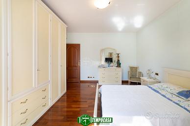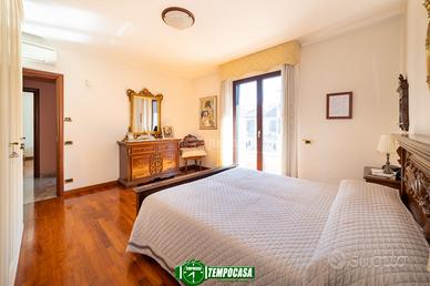 Ingresso, ampio soggiorno con camino, balcone e terrazzo, cucina abitabile con balconcino. Zona notte composta da TRE camere matrimoniali, una cameretta, bagno con box doccia e bagno padronale con vasca idromassaggio e box doccia.
