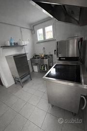 cucina completamente attrezzata con piano cottura a induzione, lavastoviglie, frigoriferi e freezer industriali