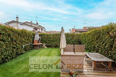 La casa è impreziosita da giardino sul fronte e sul retro, piantumato e delimitato da siepe per garantire privacy, con caminetto esterno, perfetto per momenti di relax e convivialità all'aperto.