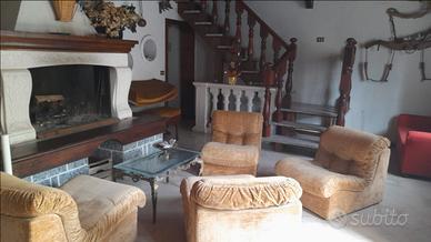 Posto auto doppio , piccola cantina e taverna con caminetto arredata, primo piano : cucina abitabile e soggiorno con camino e un bagno arredato , secondo piano : 2 camere matrimoniali , una cameretta e un bagno .