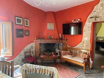 La casa Sanna, posta in pieno centro a Barumini, ristrutturata e con la documentazione in ordine, si identifica nell'immaginario collettivo locale con Su stangu ossia la rivendita di tabacchi che la famiglia gestì per oltre due secoli. Ma lo stabile vanta anche una storia ed un fascino particolare strettamente legati al vissuto e alle passioni dei suoi abitanti, tra i quali Antonicu ed Ettore, attuale proprietario. Molto noti non solo nel contesto lavorativo, l'uno come proprietario di terre ed allevatore, l'altro come funzionario statale, hanno entrambi affidato la loro notorietà alle varie passioni coltivate, quali il teatro in limba, la letteratura, la musica e la scultura. La dimora si compone di tre blocchi contigui, adibiti ad abitazione e alla custodia del necessario alla coltivazione delle terre ed all'allevamento del bestiame di proprietà. Il primo dei tre (fine '800) articolato su due piani, fu costruito da Raimondo e si affaccia verso la chiesa di Santa Lucia e la piazza omonima vero cuore pulsante del paese; il secondo, solo piano terra, fa da trait-d'union tra il primo ed il terzo ed ha un doppio affaccio sul cortile interno e sulla casa contigua. Il terzo blocco (fine '700?) ha un piano terra e piano sopraelevato affacciati sia sul cortile e sulla via Battisti. Entrati dal n.2 di via Battisti ci si ritrova nello studio con i suoi arredi e la scala in marmo che porta al piano superiore. Una finestra si apre sul cortile mentre una porta introduce al grande soggiorno già utilizzato come rivendita citata. Il locale possiede un ingresso autonomo con due porte una delle quali originale e "blindata", si affaccia sulla grande piazza Santa Lucia, incantevole isola verde in pieno centro che incastona la chiesetta dedicata alla santa. Al piano superiore 4 camere da letto (3 matrimoniali) ed il bagno, tutti con pavimento originale in tavoloni di legno non trattato, molto luminosi e dotati di finestre sul cortile e sulle vie Battisti e Principessa Maria. Tornati ne