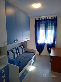 Appartamento piano terra con due giardini in una piccola palazzina di nuova costruzione ingresso autonomo con due posti auto ammobiliato nuovo Classe A + climatizzata molto bella novanta metri quadri affitto annuale La casa è composta da due camere matrimoniali soggiorno cucina bagno un ampio terrazzo affitto annuale richiesta 750