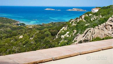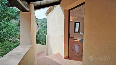 PIANO PRIMO: tramite una scala privata in tipica muratura sarda si accede ad una luminosa zona giorno con angolo cottura che si affaccia su una splendida terrazza semicoperta con vista mozzafiato sul golfo del Pevero.