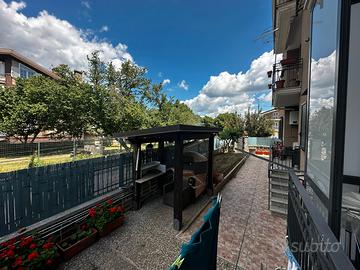 In mini-condondominio con ascensore e corte privata, unico sul ballatoio con possibilità di ingresso indipendente, VENDESI APPARTAMENTO RIFINITISSIMO CON CORTE PRIVATA ATTREZZATA. Unità immobiliare UNICA SUL BALLATOIO, al piano rialzato senza barriere architettoniche, facente di un fabbricato post-terremoto oggetto di lavori di riqualificazione super bonus 110%. Appartamento ristrutturato di recente con salone d'ingresso con accesso al giardino, cucina con veranda, tre letto, bagno, ripostiglio, bagno/lavanderia, balconate e pertinente comodo box al piano interrato. Posti auto disponibili all'interno della corte del fabbricato. Appartamento termoautonomo, fornito ulteriormente di stufa a pellets.