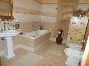 Appartamento in villa, zona ospedale, composta da tre vani letto, cucina/soggiorno, due bagni, ripostiglio, porzione di corte esterna con due posti auto e magazzino.