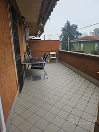 L'abitazione è stata appena ristrutturata all'interno, è composto da un giardino piastrellato con porticato appena ristrutturato comodo per mettere la macchina,.L'appartamento si sviluppa al primo piano, ha un ampio terrazzo esterno all'accesso, un living molto ampio, che comprende in open space una cucina abitabile con bancone e sgabelli, e di fronte una sala altrettanto ampia. Ci sono poi 2 camere da letto, una con altro terrazzo e un bagno. La casa gode di infissi con doppi vetri in alluminio e videocitofono. Completano la proprietà un triplo box e una cantina/taverna da ristrutturare di 50 mq.