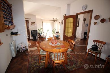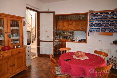 La casa è dotata di una veranda e balconi che offrono viste incantevoli e spazi all'aperto per il relax. Il locale cantina e il garage aggiungono ulteriore praticità, mentre il cortile e il giardino sono perfetti per momenti di svago all'aria aperta. Il riscaldamento è assicurato da un impianto a termosifoni.
