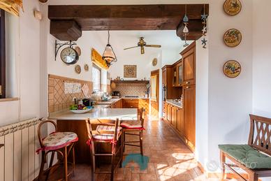 Le caratteristiche dell'immobile sono le seguenti: infissi in pvc effetto legno con doppio vetro a taglio termico con apertura a vasistas, persiane in ferro blindate, pavimentazione in gress e in cotto, aria condizionata caldo/freddo, antifurto con telecamere di videosorveglianza, porta blindata, prediposizione camino, grate, tende da sole, pergotenda con apertura tetto automatica, due cancelli carrabili elettrici, caldaia a pellet e caldaia a gas, stufa a pellet, pozzo di 70mt, irrigazione automatica del giardino ed illuminazione esterna sul viale e giardino.