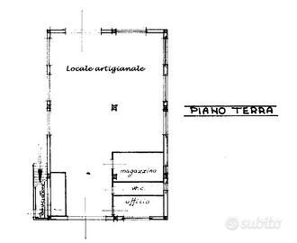 Al piano terreno si trova un ampio locale artigianale di mq. 155 con magazzino, ufficio e bagno oltre a cantina e locale caldaia. In una costruzione staccata troviamo un locale originariamente adibito ad autolavaggio di mq. 26 e separatamente un garage di mq. 12.