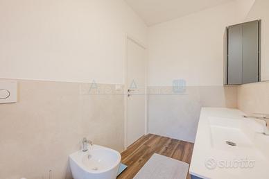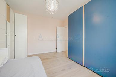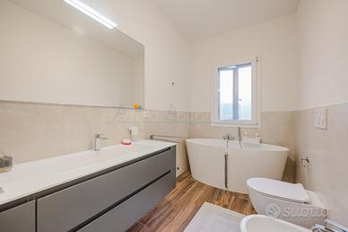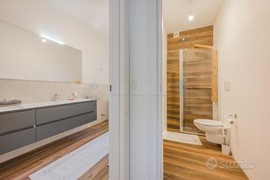 La zona notte si compone di due spaziose camere matrimoniali, di cui una dotata di cabina armadio. A completare la proposta due bagni: uno principale con vasca e un secondo bagno con doccia.