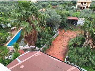 Villa con terreni edificabili sita a Capaci (PA), in Contrada Case Troia, via Donatello n.1 Trattasi di abitazione unifamiliare indipendente con giardino, piscina privata e lotti di terreno circostante, ubicati in posizione periferica agricola. La residenza sorge all'interno di un lotto di circa 3.000 mq e si sviluppa su tre livelli: Al piano terra si trovano ingresso, soggiorno, cucina, veranda, lavanderia, ripostiglio, due camere e due servizi; il primo piano ospita un'ulteriore zona giorno/notte con terrazzo panoramico e servizio; il piano superiore include due camere, doppi servizi e balcone. Completano la proprietà più appezzamenti di terreno limitrofi, caratterizzati da uliveto, pascolo e vegetazione spontanea, con orografia variabile e accesso da Via Donatello. I terreni sono parzialmente recintati, dotati di opere di urbanizzazione nell'area di lottizzazione e ricadono in zona C6, con possibilità edificatorie limitate secondo gli indici previsti. Il bene risulta non conforme, per maggiori informazioni vedasi documentazione allegata.