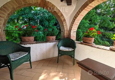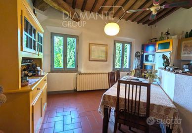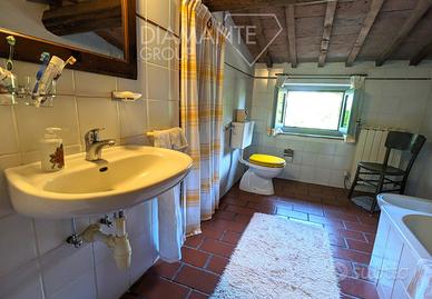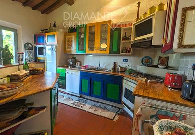 - Casale in pietra a vista su due livelli di circa 500 mq con quattro locali ad uso magazzino, due locali ad uso cantina, limonaia, ripostiglio sottoscala e bagno a piano terra, soggiorno, cucina, disimpegno, tre camere da letto, uno studio ed un bagno a piano primo con ampia loggia con archi in mattoni;