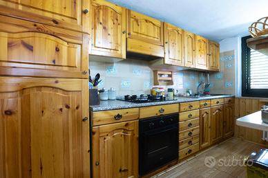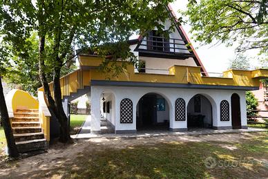 Singolare "baita abruzzese" di 100mq a San Giorgio (1180m.) frazione del Comune di Crognaleto (Te). Quella che i paesani chiamano "la Villa" è così composta: al piano terra (circondato da un porticato perimetrale) salone di 40 mq. + bagno + cucina e ripostiglio. Al primo piano (con balconata perimetrale) sala-tinello di 26 mq. Camera di 10mq. + bagno. Al secondo piano due camere: una di 12 mq. con balcone; l'altra di 9 mq. L'intera casa è circondata da un giardino di 150mq. sul quale insistono diversi alberi tra cui un poderoso ciliegio e due amarene. Riscaldamento con termocamino+ caldaia a gas. A ridosso del giardino terreno per allestire un orto. Prezzo: 235mila euro