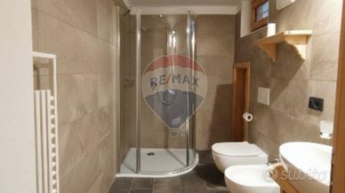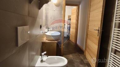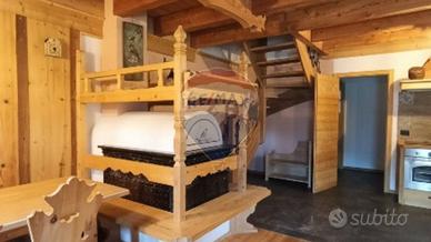 Il soffitto presenta travi massicce a vista, elemento fondamentale nell'architettura montana. Sono presenti accessori che evocano la montagna.