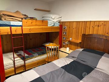 Composta piano terra camera matrimoniale con balcone vista montagne, camera ospiti con 4 posti letto e ingresso con bagno.
