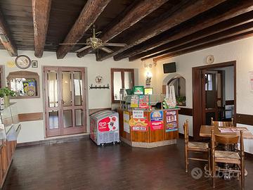 A Lauzacco, struttura ricettiva composta da ampia zona bar/ristorante con servizi e cucina attrezzata al piano terra; 4 camere e bagno al primo piano e una soffitta al piano superiore.