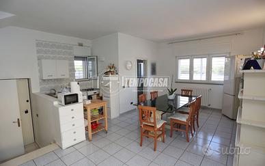 PIANO TERRA/RIALZATO (50 mq circa): ingresso su luminoso salone a vista con angolo cottura, bagno e box auto di 18mq comunicante con l'abitazione.