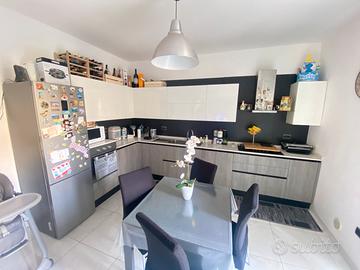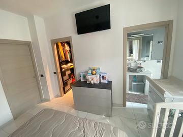 L'immobile è così composto: ingresso, disimpegno, salone, cucina con uscita su un terrazzo e giardino privato di 70 m², camera matrimoniale con bagno in camera e cabina armadio, cameretta, secondo bagno lavanderia e sottotetto utilizzabile come ripostiglio (circa 10 m²). L'appartamento è stato ristrutturato con materiali di pregio, e lo stabile, anch'esso ristrutturato lo scorso anno grazie agli interventi del Superbonus 110%, è in ottime condizioni. Inoltre, l'immobile gode di un posto auto esterno e un posto auto non numerato all'interno del parco.