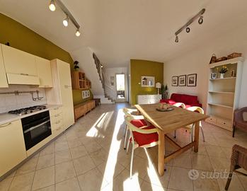 Al primo piano, un ampio e luminoso soggiorno con cucina a vista si affaccia su un spazioso terrazzo, perfetto per cene all'aperto con barbecue e una vista mare mozzafiato. Completa il piano un bagno accessoriato con box doccia. Al secondo piano, troverai due camere da letto matrimoniali e un secondo bagno, anch'esso con box doccia, ideale per famiglie o gruppi di amici.