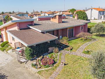 In una bella zona residenziale, disponiamo di un'esclusiva villa indipendente disposta su un unico piano di circa 180 mq, valorizzata da un giardino piantumato e recintato di circa 1.100 mq che garantisce la massima privacy. L'immobile si distingue per una distribuzione funzionale degli spazi e comprende una luminosa zona living con caminetto, una cucina abitabile, uno studio e tre camere matrimoniali, oltre a doppi servizi e un comodo ripostiglio. La proprietà è completata da un ampio pergolato sul retro, ideale per pranzi e cene all'aperto, e da un garage spazioso. RIF. 226700. Per maggiori informazioni visita www.grupposirio.com.