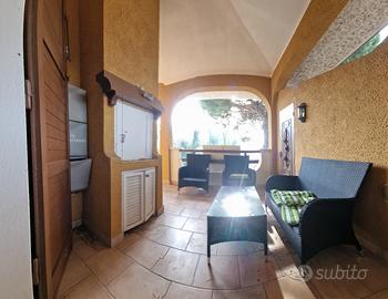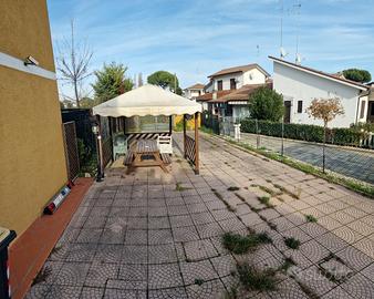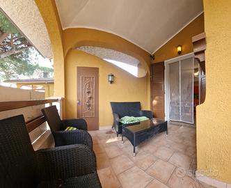 L'ampio terrazzo vivibile, completo di barbecue, invita a trascorrere piacevoli serate all'aperto, mentre il giardino esclusivo offre uno spazio privato dove rilassarsi. La villetta dispone di tre camere da letto spaziose e un bagno accessoriato con box doccia, perfetto per le esigenze di tutta la famiglia.
