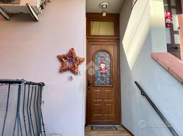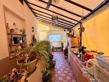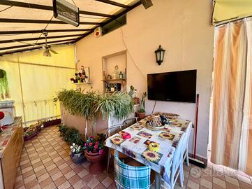 Al piano terra troviamo un ampio bilocale con soggiorno e cucina a vista. Una stanza aggiuntiva, attualmente adibita a sala da pranzo, offre ulteriore spazio. La camera doppia è di generose dimensioni, mentre il bagno è dotato di doccia. Una scala coperta porta alla terrazza panoramica, perfetta per momenti di relax o pranzi all'aperto. La terrazza collega le due unità, dando accesso al piano superiore.