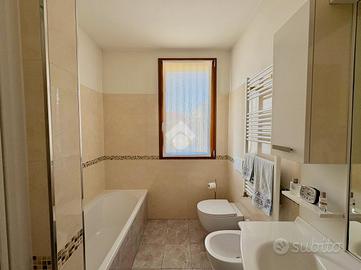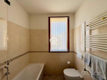 ADRO - Elegante porzione di bifamiliare ristrutturata con corte esclusiva In posizione centrale e comoda a tutti i servizi, proponiamo in vendita una raffinata porzione di bifamiliare con ingresso indipendente, ideale per chi desidera privacy, comfort e uno stile abitativo contemporaneo. L'immobile, completamente ristrutturato nel 2015 (comprensivo di tetto, serramenti e impianti), si presenta in eccellenti condizioni, con ambienti luminosi e finiture moderne. Al piano terra si sviluppa una piacevole zona giorno con cucina a vista, affiancata da un bagno di servizio, una comoda lavanderia e una stanza versatile, attualmente adibita a studio, perfetta anche come camera aggiuntiva. Il piano primo ospita la zona notte con due ampie camere matrimoniali e un elegante bagno padronale completo. Al livello superiore, una suggestiva mansarda con travi a vista e pavimentazione effetto parquet offre uno spazio esclusivo e polifunzionale, ideale come suite, area relax o studio. All'esterno, una curata corte privata di circa 100 mq rappresenta un vero valore aggiunto: uno spazio riservato e vivibile, perfetto per momenti di relax all'aperto e per il parcheggio delle auto. Dotata di riscaldamento a pavimento, cappotto termico e impianto fotovoltaico per la produzione di acqua calda sanitaria, la proprietà garantisce elevata efficienza energetica (classe B) e massimo comfort abitativo. Una soluzione di charme, pronta da vivere, ideale per famiglie o per chi è alla ricerca di indipendenza e qualità in una posizione strategica. Se desiderate una prima consulenza per la vendita della vostra attuale proprietà, offriamo valutazioni gratuite e senza alcun impegno. Per maggiori informazioni o per fissare un appuntamento, contattare l'agenzia.