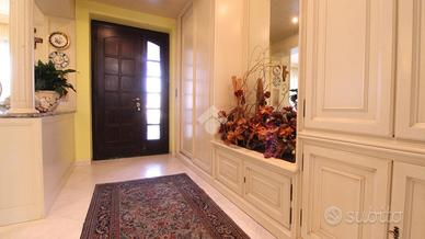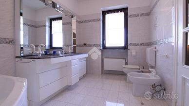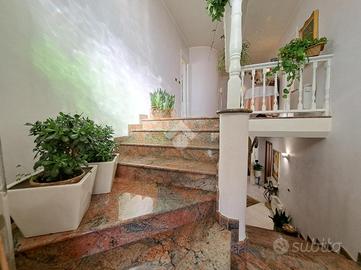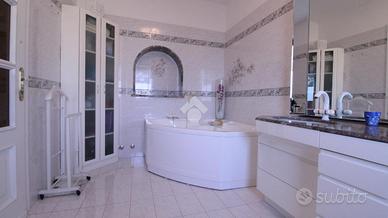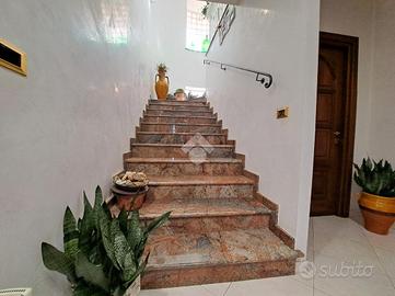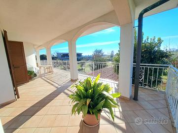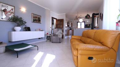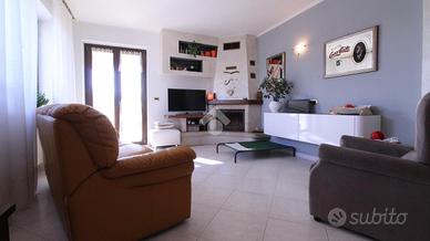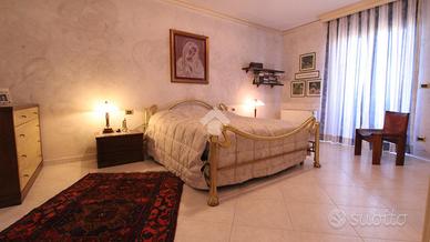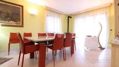 Appena fuori dal centro paese ed in una zona tranquilla, bifamiliare di ampia metratura disposta su tre livelli. Il piano terra ospita la prima unità abitativa. L'ingresso si ha mediante un portico frontale che conduce al locale disimpegno che suddivide i locali. La zona giorno è costituita da ampio soggiorno impreziosito dal camino ventilato suddiviso da un basso muretto dalla cucina abitabile. Inoltre, è presente un ulteriore locale utilizzato come sala da pranzo. Invece, la zona notte conta di una camera da letto ed un bagno ristrutturato nel 2005 con spaziosa doccia e finestra. Invece, il piano primo accessibile mediante una comoda ed elegante scala in marmo, è costituito dalla seconda unità abitativa. Attualmente, è utilizzata come zona notte ed è costituita da quattro camere da letto, due delle quali con accesso su due balconcini rivolti verso il retro della casa e le altre due con accesso sul balcone che si estende lungo parte della facciata e laterale della casa. E' presente un bagno con vasca e finestra. Inoltre, una delle camere ha un bagno con vasca idromassaggio ed un locale cabina armadio. Una delle camere ha la predisposizione per gli attacchi cucina. Invece, il locale seminterrato accessibile sia dall'esterno che mediante elegante scala in marmo, ospita un elegante tavernetta impreziosita da stufa a legna, un locale cantina, un bagno di servizio e due spaziosi box auto rispettivamente di 24 mq e 20 mq. Il riscaldamento è dato da due caldaie a condensazione a metano sostituite nel 2022 e nel 2023 mediante termoconvettori. Il riscaldamento dei due appartamenti è separato. Inoltre, sono presenti le canne fumarie e il camino. Gli infissi sono in PVC e dotati di doppi vetri, mentre le persiane sono in alluminio. Sono presenti le zanzariere a scomparsa con guida a carroarmato. Sui muri è presente l'intonaco con stucco veneziano. Il tetto è stato coibentato con lana di roccia e sono presenti tre fosse biologiche, due delle quali con scarico in fogna. Este...