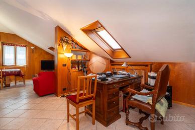 Nel cuore del Belvedere, ad Alpignano, si propone in vendita un ampio multilocale di 200 mq, situato in un piccolo contesto condominiale dei primi anni Novanta. La soluzione si sviluppa su due livelli , con possibilità di essere suddivisa in due unità abitative completamente autonome tra loro, grazie alla preesistente suddivisione degli impianti e agli accessi privati. Dal portoncino blindato si accede su un elegante soggiorno living, valorizzato dal camino a legna, ideale per trascorrere momenti di relax. L'angolo cottura a vista ospita una spaziosa e funzionale cucina, con affaccio sull'ampia vetrata che ha sfogo sul terrazzo. Al piano sono presenti inoltre una camera matrimoniale e una cameretta con affaccio su un balcone, il ripostiglio e il bagno con vasca finestrato. La scala interna conduce alla mansarda abitabile con cucina, un ambiente intimo e funzionale, perfetto da vivere quotidianamente o da riservare agli ospiti. La camera matrimoniale è caratterizzata da finiture e arredi artigianali su misura. Completa il piano il bagno finestrato con box doccia. Un'abitazione che unisce comfort e praticità, arricchita da un box auto doppio e cantina. Situata in una posizione ideale, grazie alla presenza della stazione ferroviaria ma sopratutto alla vicinanza della tangenziale.