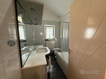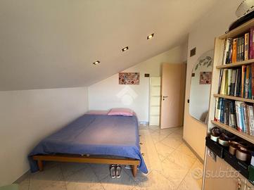 Mentre il primo piano è adibito ad abitazione ed è composta da ingresso in ampio soggiorno, cucina abitabile, bagno di servizio/lavanderia, studio e veranda, la zona notte presenta tre camere da letto e bagno patronale.