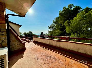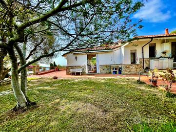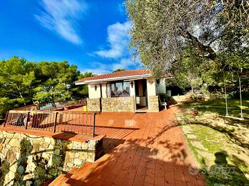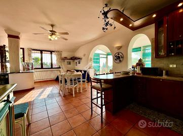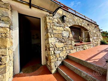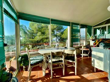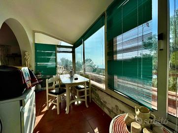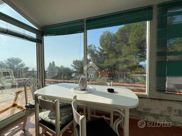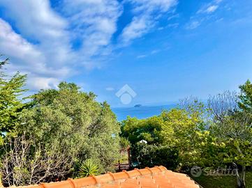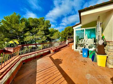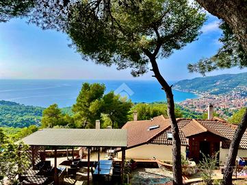 In posizione dominante, con vista panoramica su tutto il golfo andorese e alassino, villa bifamiliare con ampi spazi esterni.