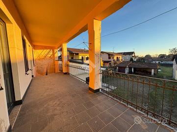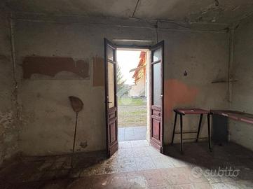 BELLINZAGO NOVARESE: In zona centrale porzione di casa bifamiliare disposta su tre livelli, da ristrutturare. Al piano di terra è presente un soggiorno e una cucina adiacente. Al primo piano, accessibile sia tramite scala a chiocciola interna, sia tramite scala esterna, sono presenti due camere da letto, un bagno, e un terrazzo esterno. Infine al secondo piano mansardato, sono presenti due locali allo stato grezzo, con possibilità di renderli abitabili. Concludono la proprietà un giardino esterno di c.a. 400 mq, un deposio adibito a box, un cassero, una dépendance è un locale catinato sottostante. Il tetto è stato completamento ristrutturato circa quattro anni fa.